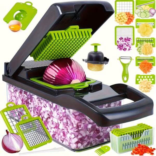 Multifunktsionaalne lõikur-viilutaja Kõik vajalik ühes Köögiviljalõikur on multifunktsionaalne puu- ja juurviljalõikur, mis muudab köögitöö lihtsamaks See lõikab suurepäraselt kuubikuteks, viilutab