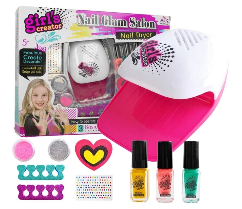 Komplektis küünekuivatuslamp, küünelakid 3tk, dekoratiivsed kivikesed + glitter, varavaste eraldajad, südamekujuline küünevii.